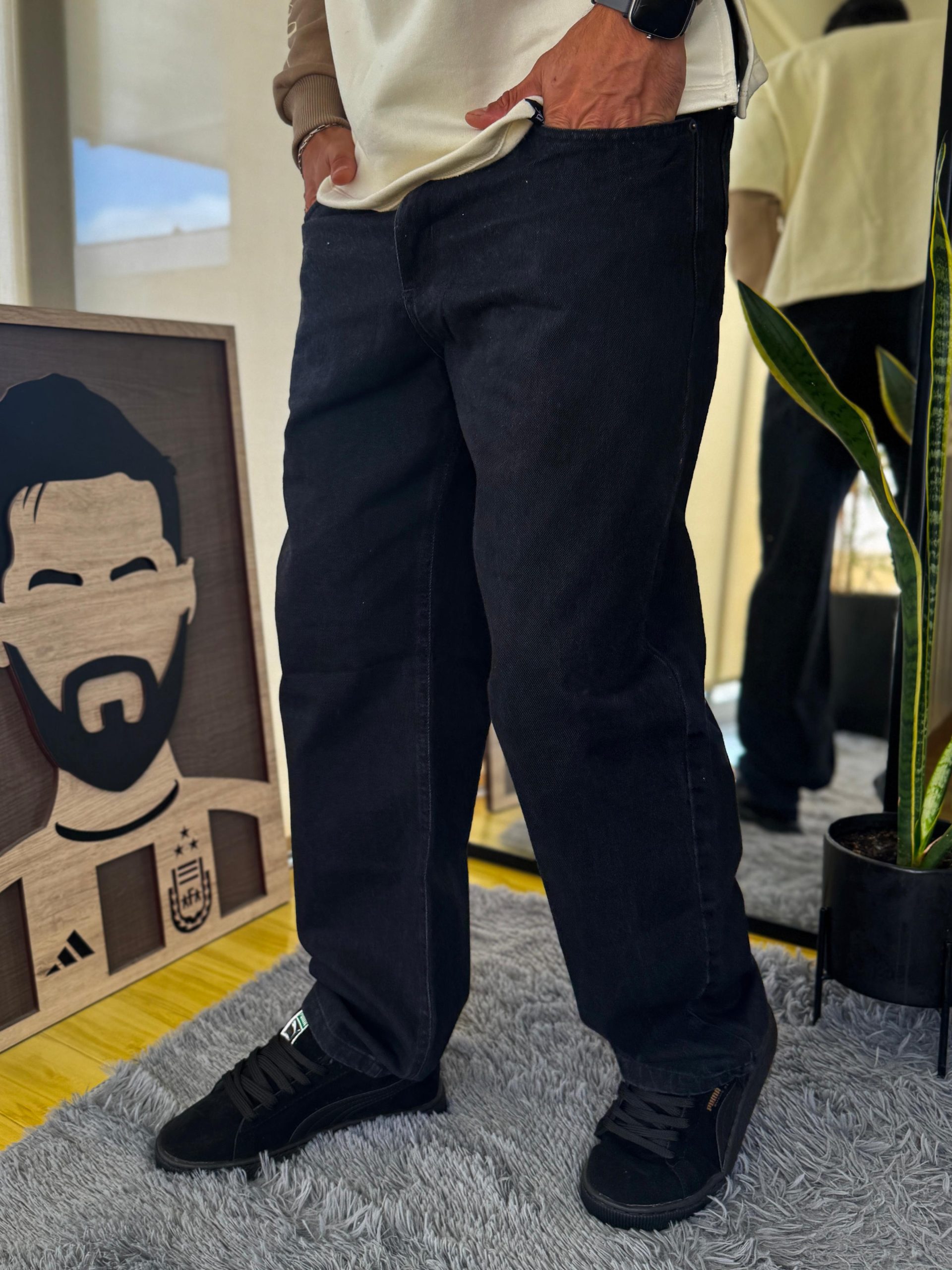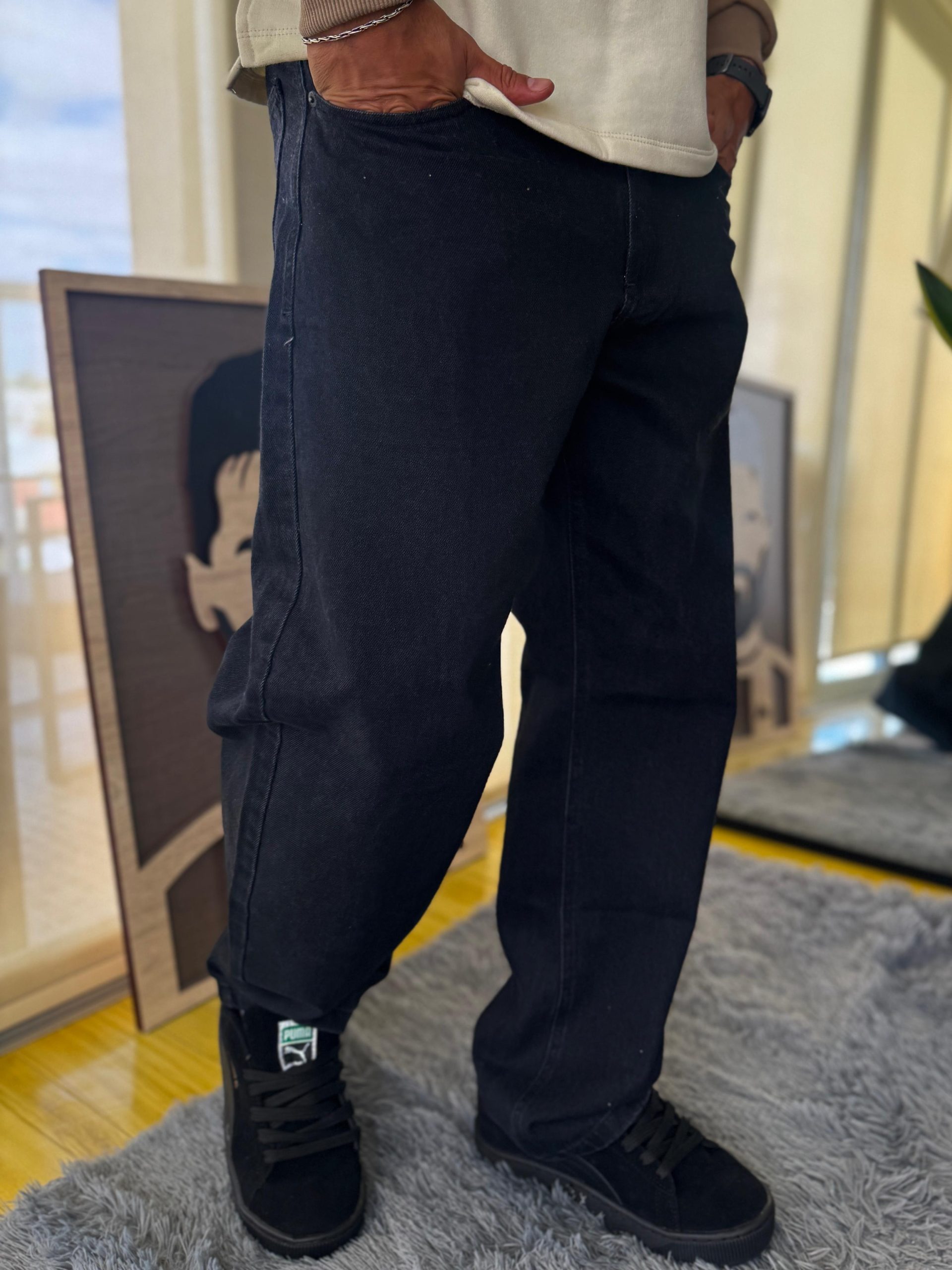 jean corte baggy negro gastado