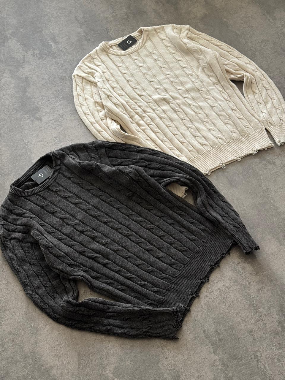 SWEATER TRAMADO CON DETALLES EN PUO Y CINTURA, 2 COLORES. Disponible del S al XXL.