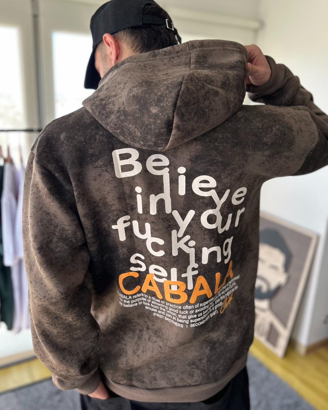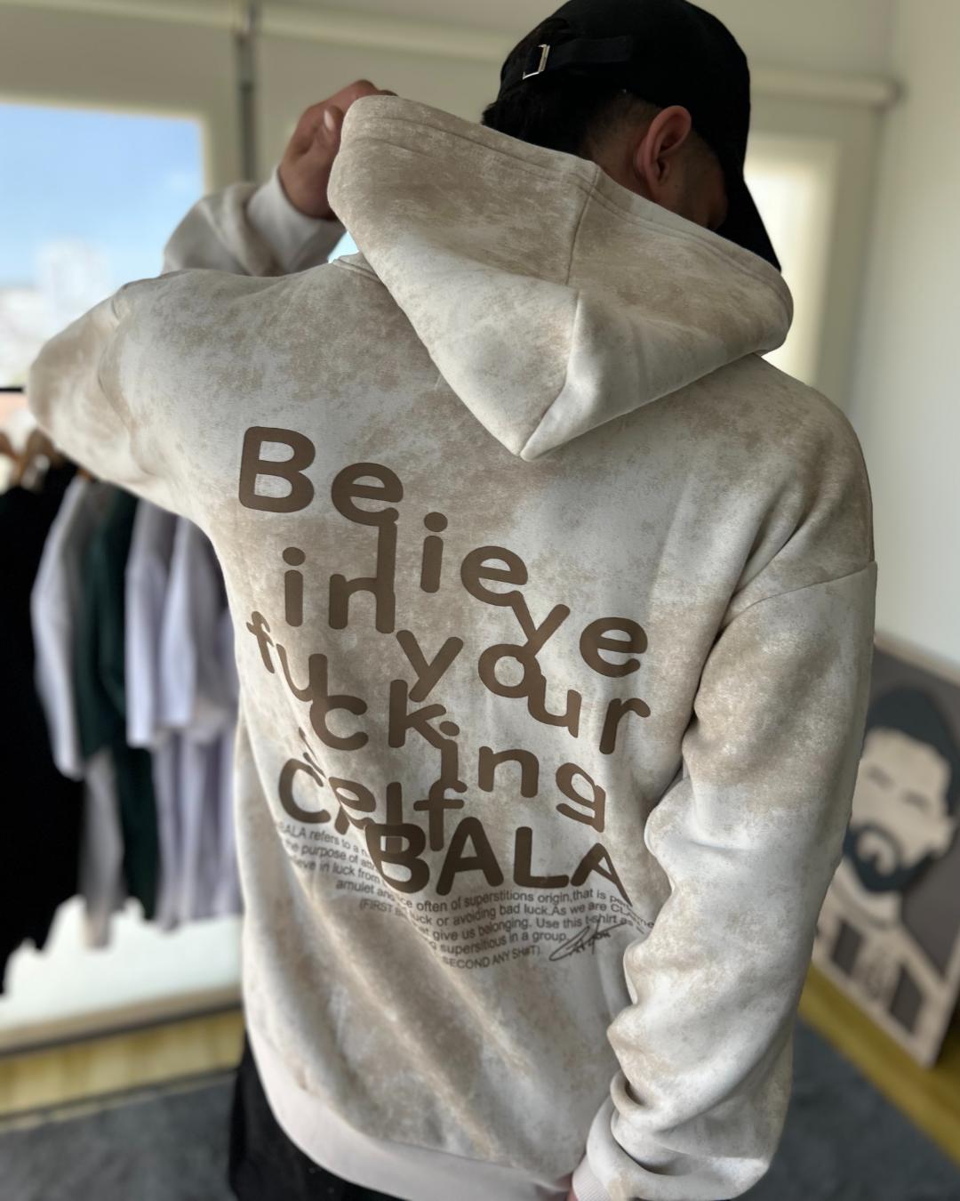 Buzo oversize Believe. Disponible en del S al XL. Colores: Verde, chocolate y natural. Buzo con doble frisa, estampado en espalda.
