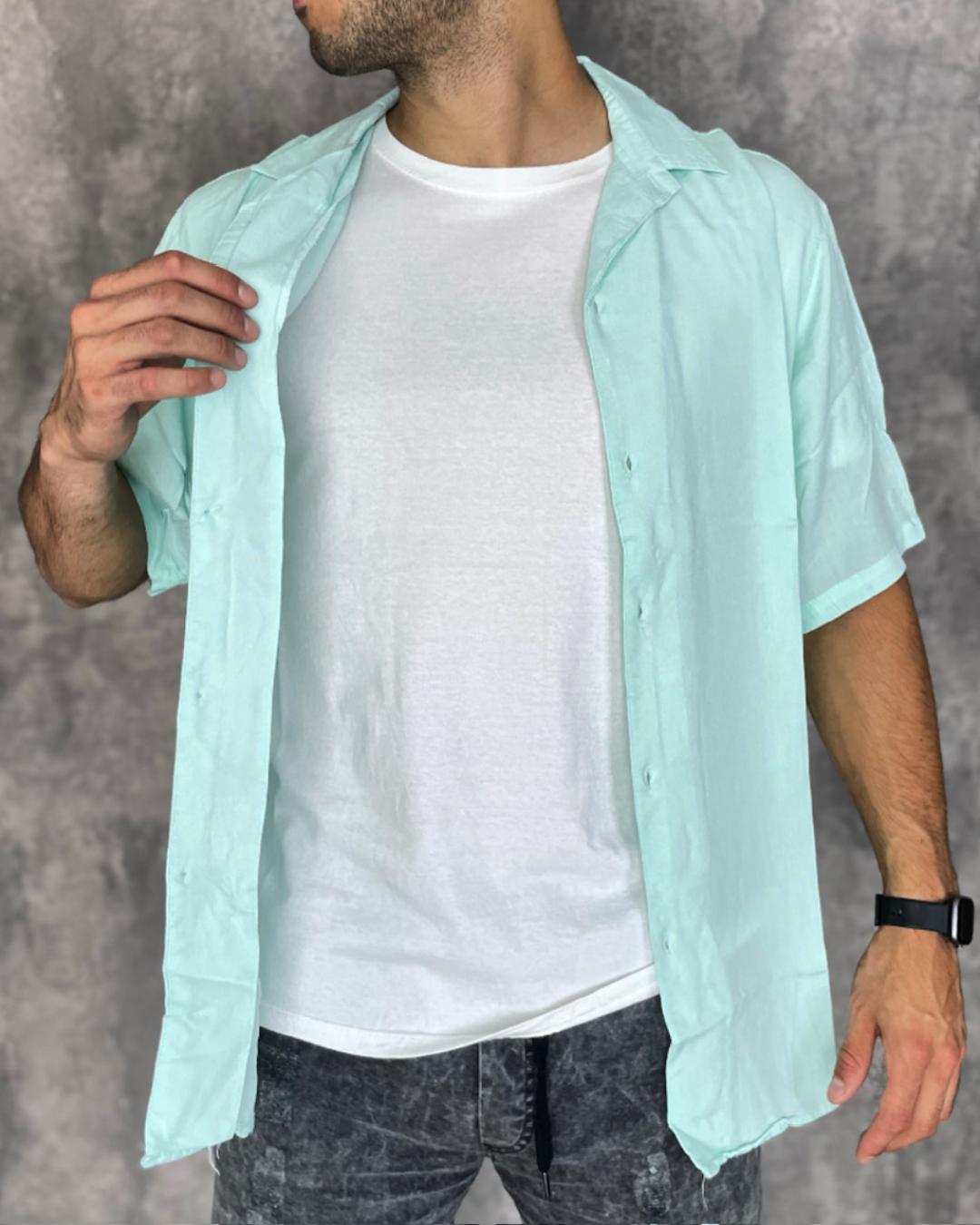 Camisa manga corta, disponible en verde agua.