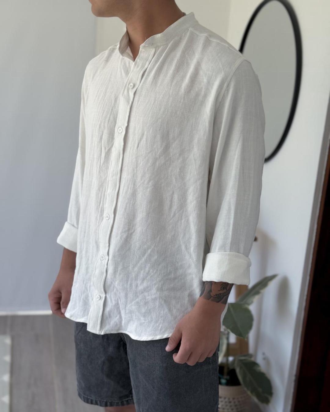 Camisa de lino disponible en 2 colores: negro y blanco.