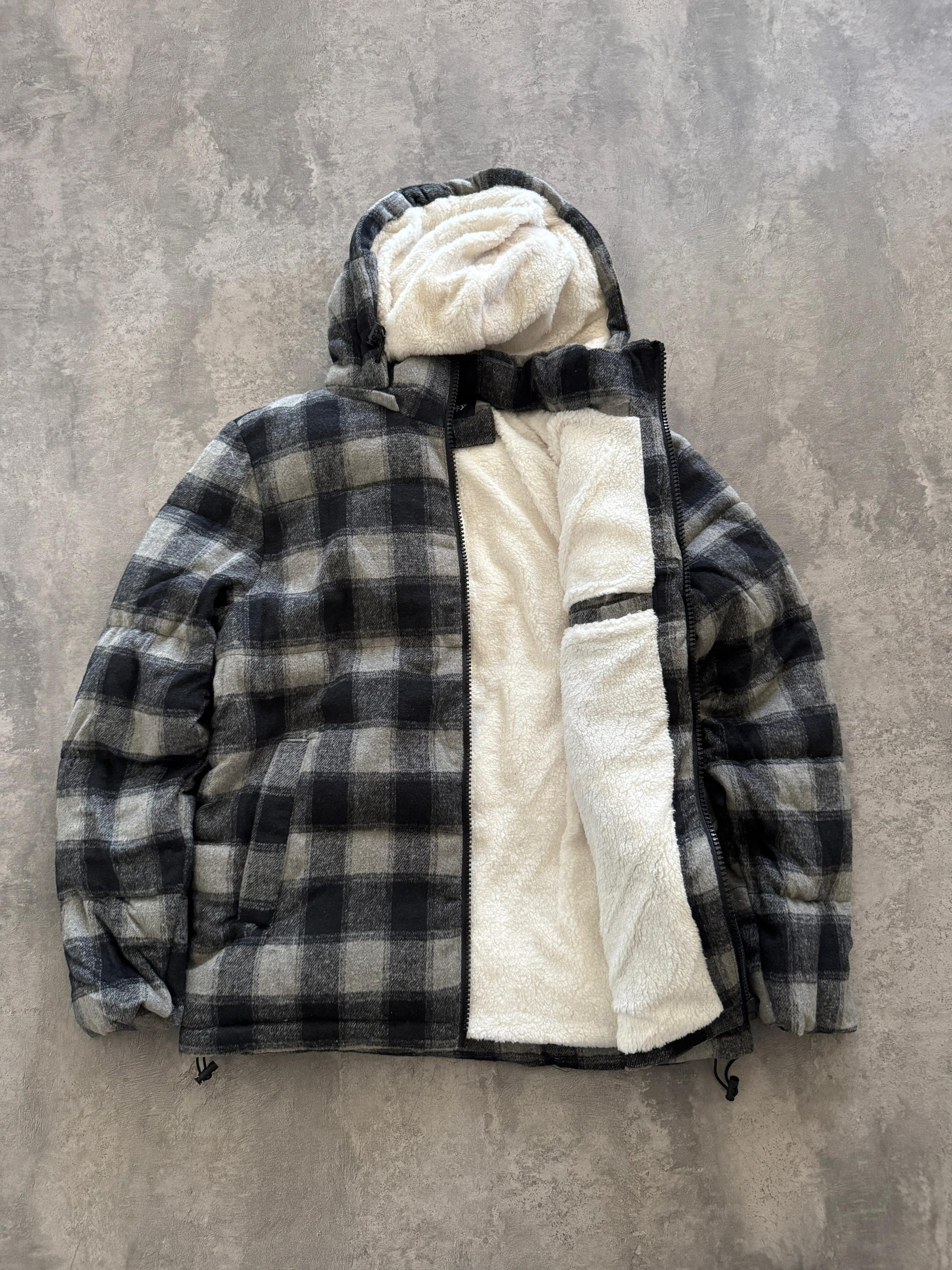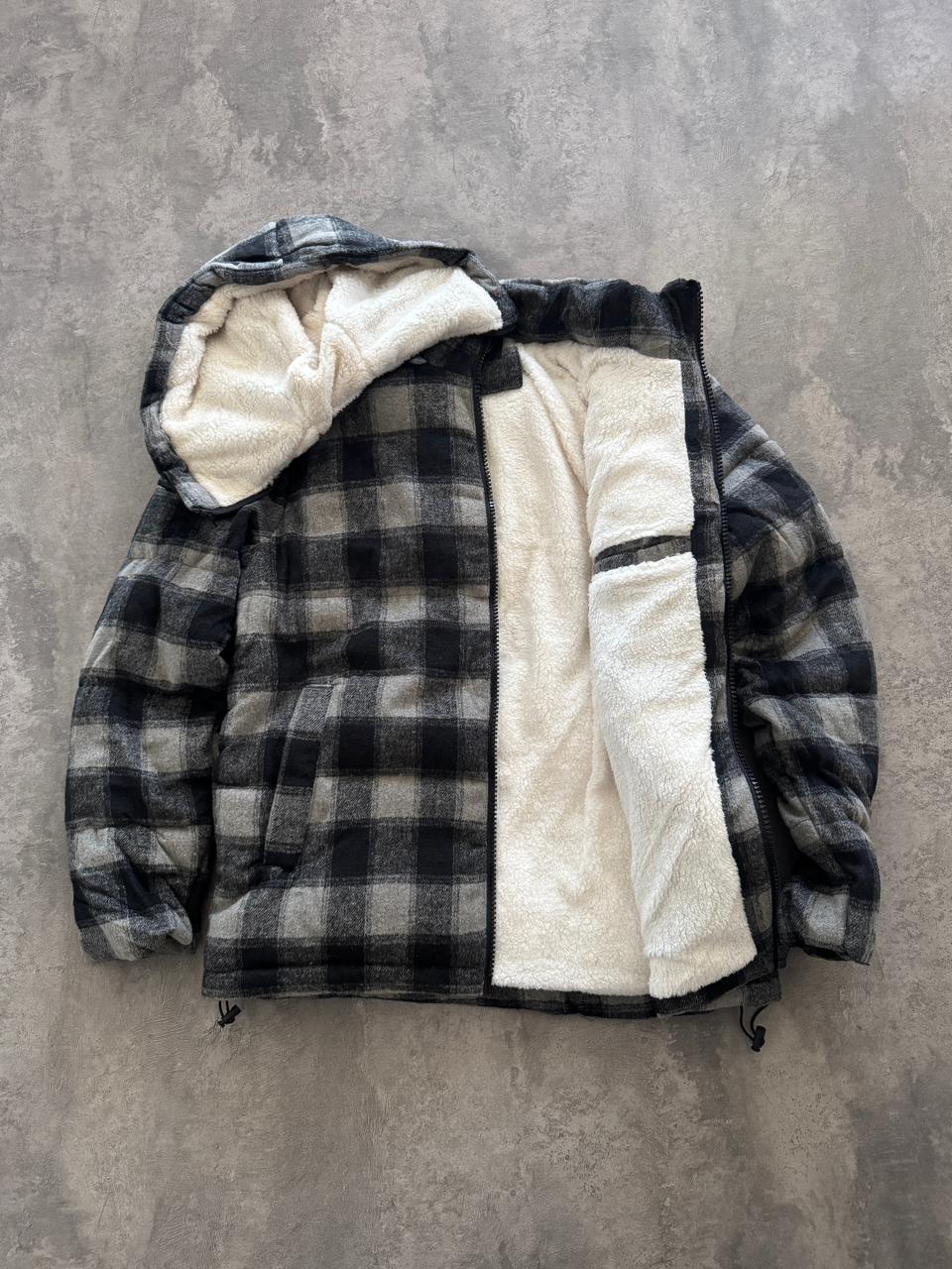 UNA CAMPERA DE ALTO INVIERNO, TOTALMENTE FORRADA EN CORDERITO CON CAPUCHA DESMONTABLE