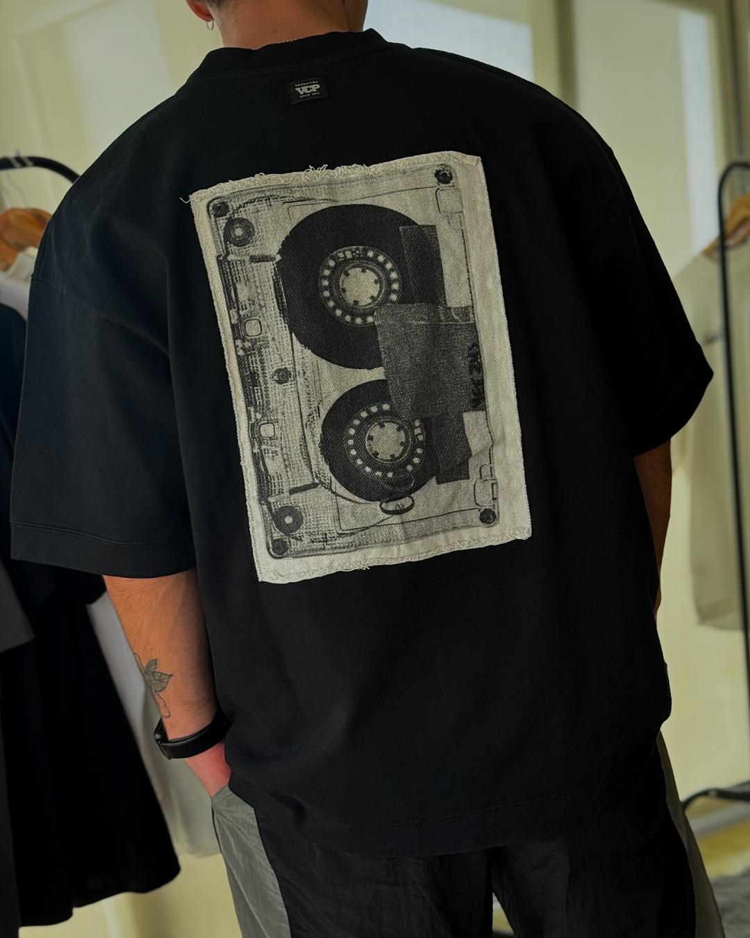 Remera Cassette de algodón over size con estampa en espalda. Disponible en negro.