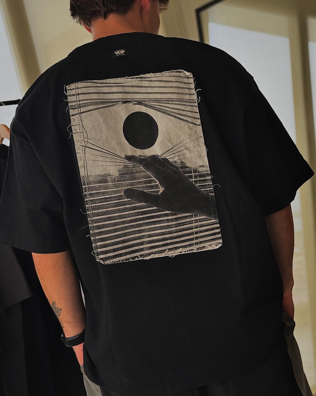 Remera Sun de algodón over size con estampa en espalda. Disponible en negro.