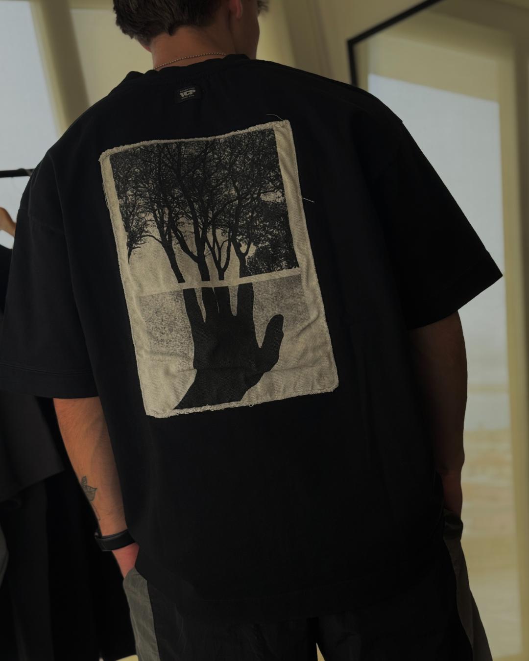 Remera Tree de algodón over size con estampa en espalda. Disponible en negro.
