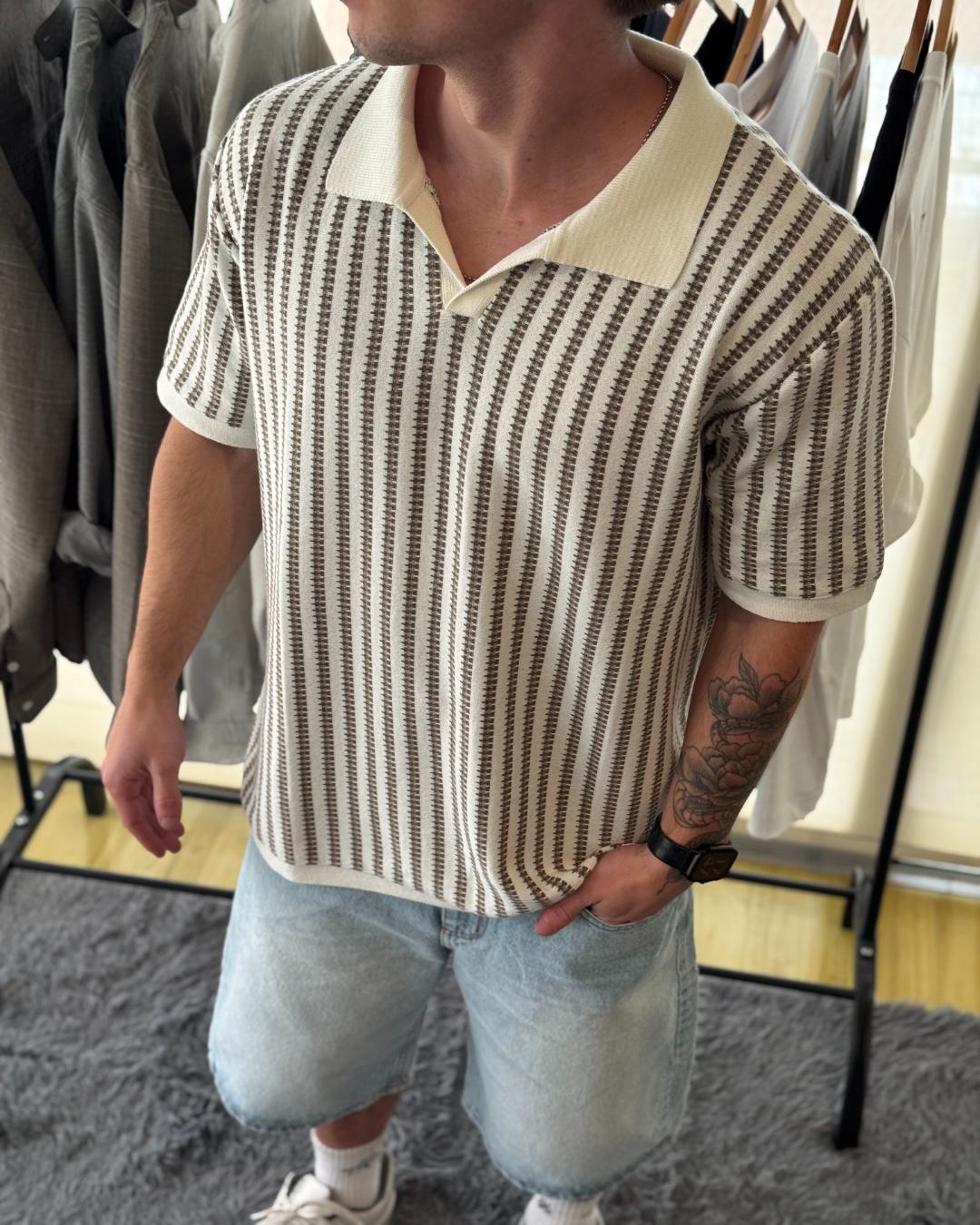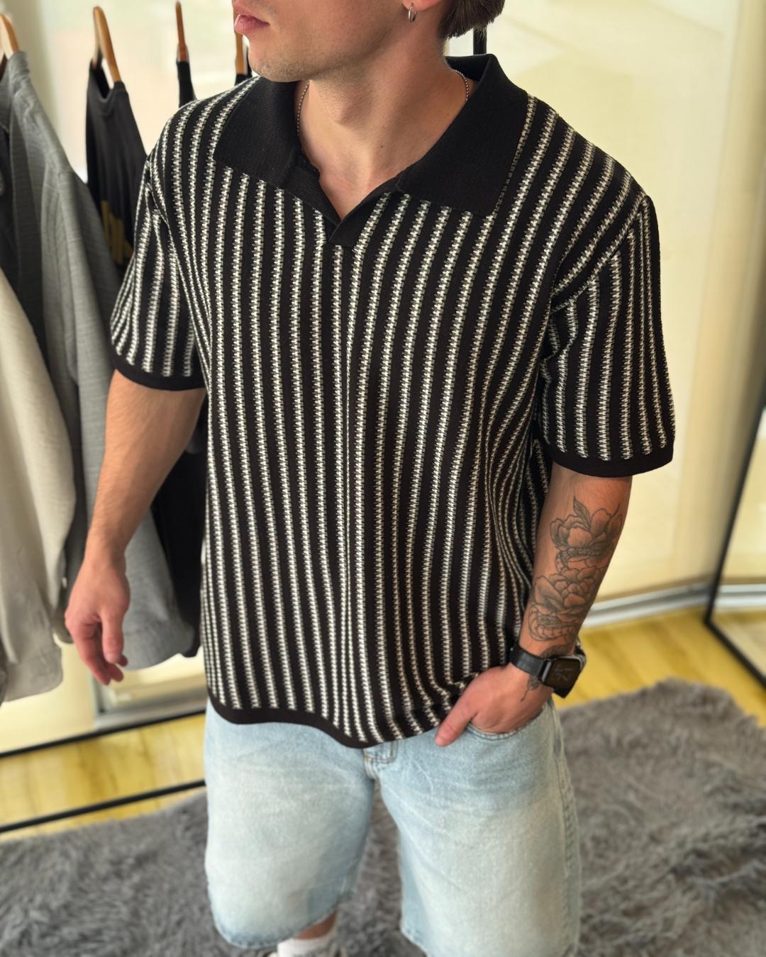 Chomba Tejida regular fit. Disponible en negro y beige.