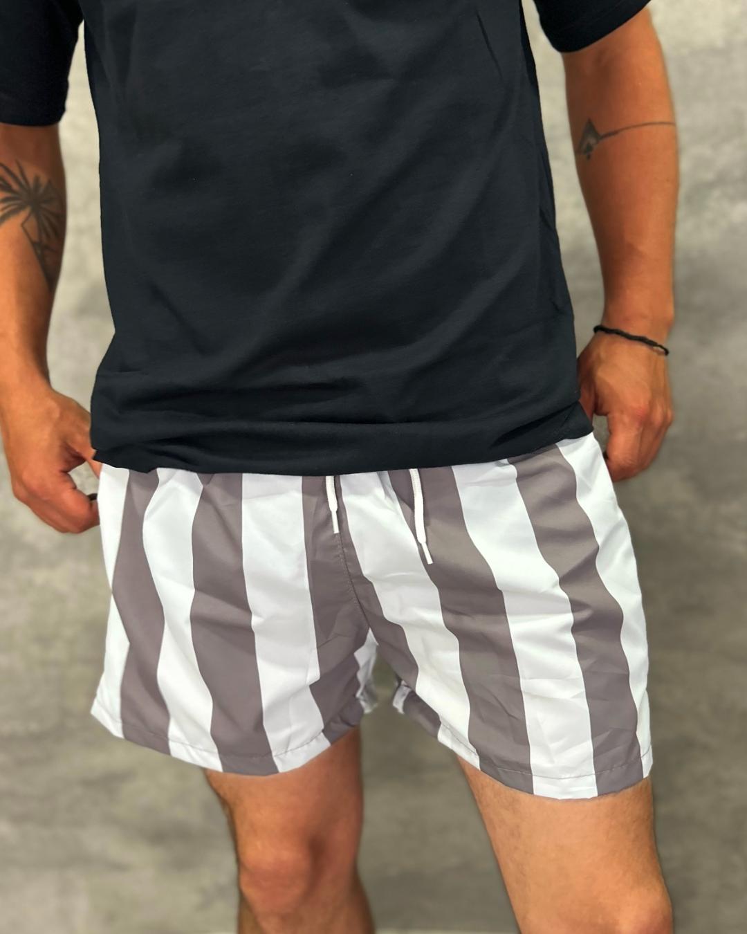 Short de baño premium rayado, disponible en color blanco y marrón.
