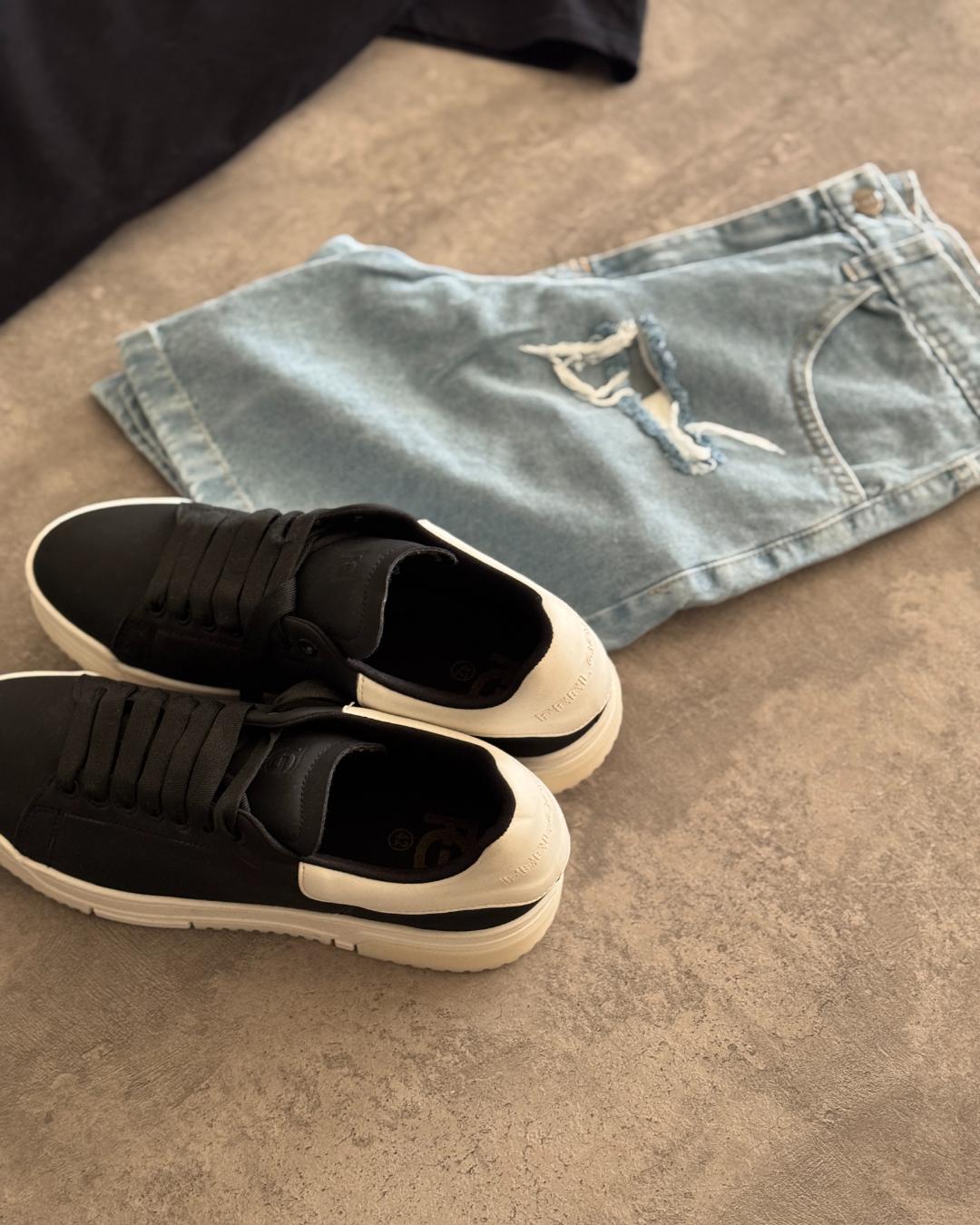 Denim Bluck, corte mom. Disponible en celeste y negro.